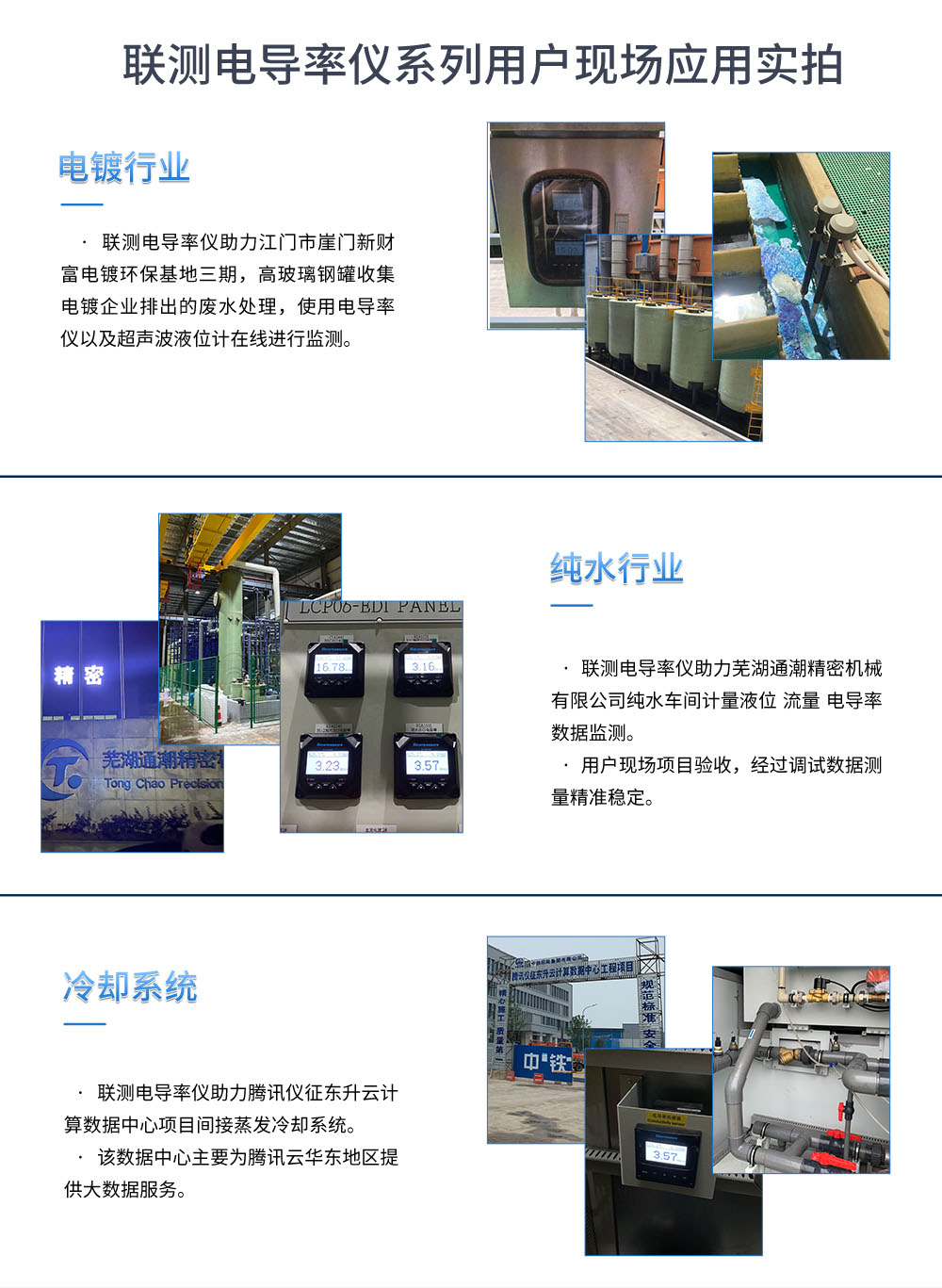 應(yīng)用行業(yè) 聯(lián)測(cè)SIN-EC8.0在線電導(dǎo)率儀廣泛應(yīng)用于廢水,純凈水,環(huán)境監(jiān)測(cè),食品生產(chǎn)過(guò)程等。