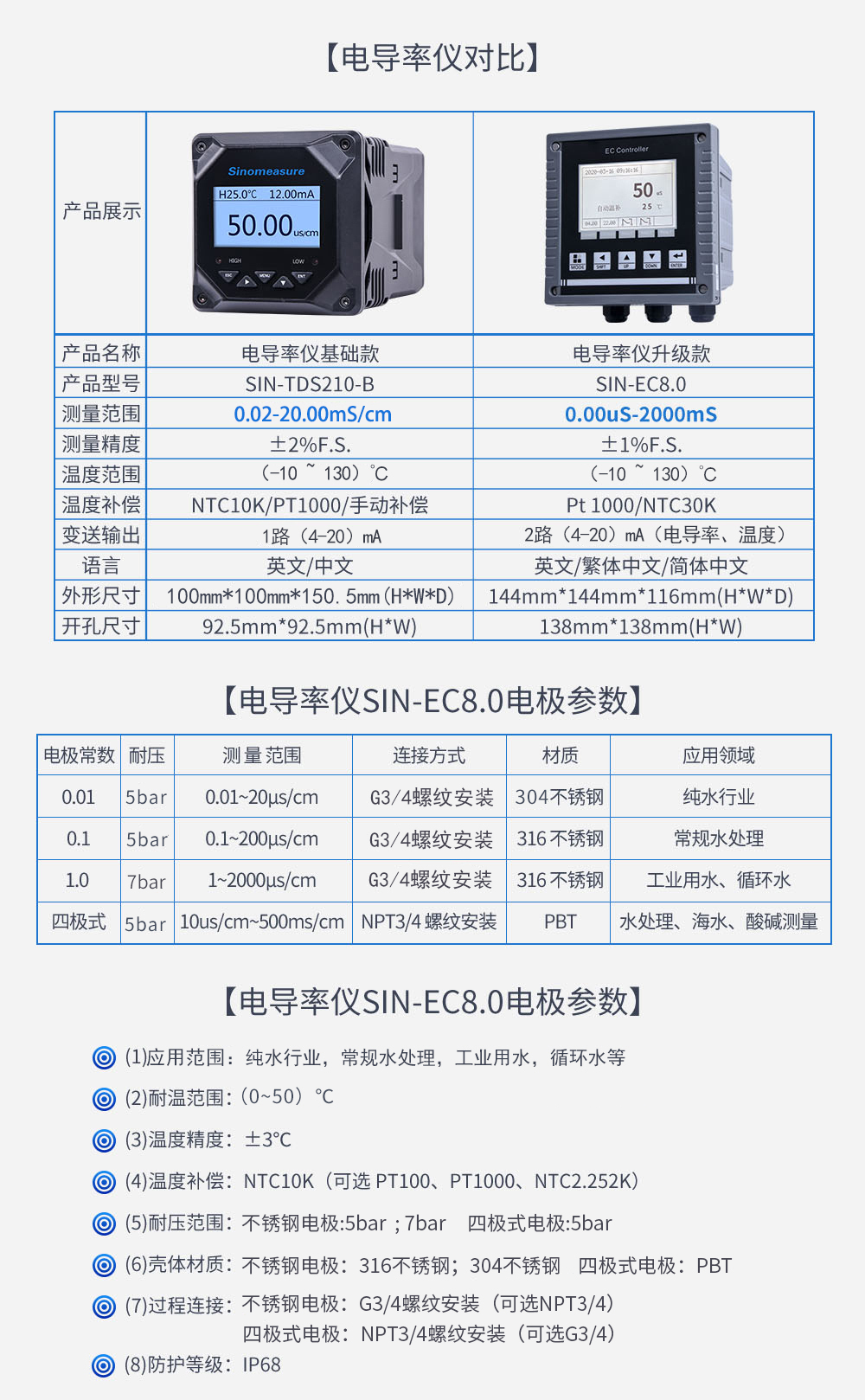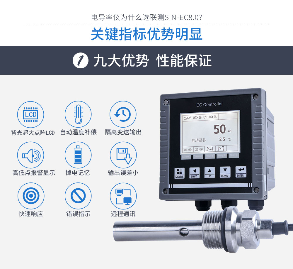聯(lián)測(cè)儀表SIN-EC8.0在線電導(dǎo)率儀RO過(guò)程、水處理、CIP清洗、海水淡化