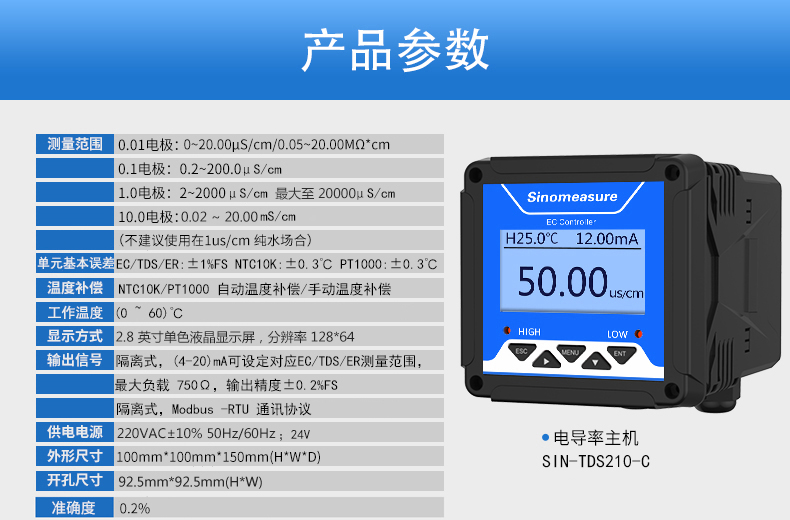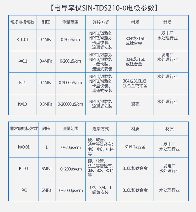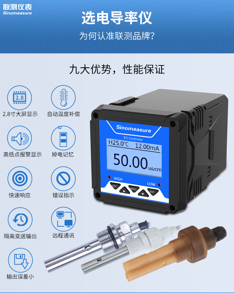 聯(lián)測(cè)儀表SIN-TDS210-C在線EC升級(jí)款電導(dǎo)率儀鍋爐行業(yè)、純水檢測(cè)
