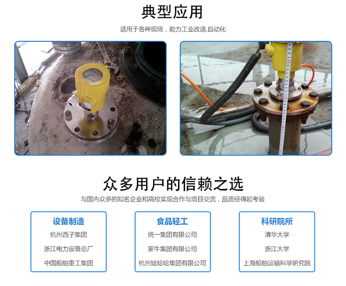 | 應(yīng)用行業(yè) | SIN-RD701導(dǎo)波雷達(dá)液位計應(yīng)用于水液儲罐、酸堿儲罐、漿料儲罐、固體顆粒、小型儲油罐、各類導(dǎo)電、非導(dǎo)電介質(zhì)、腐蝕性介質(zhì)。如煤倉、灰倉、油罐、酸罐等。 |